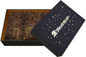 従来品の35倍の重量を実現させた「ブラックサンダー大」に金粉をあしらった高級感溢れる一品です♪